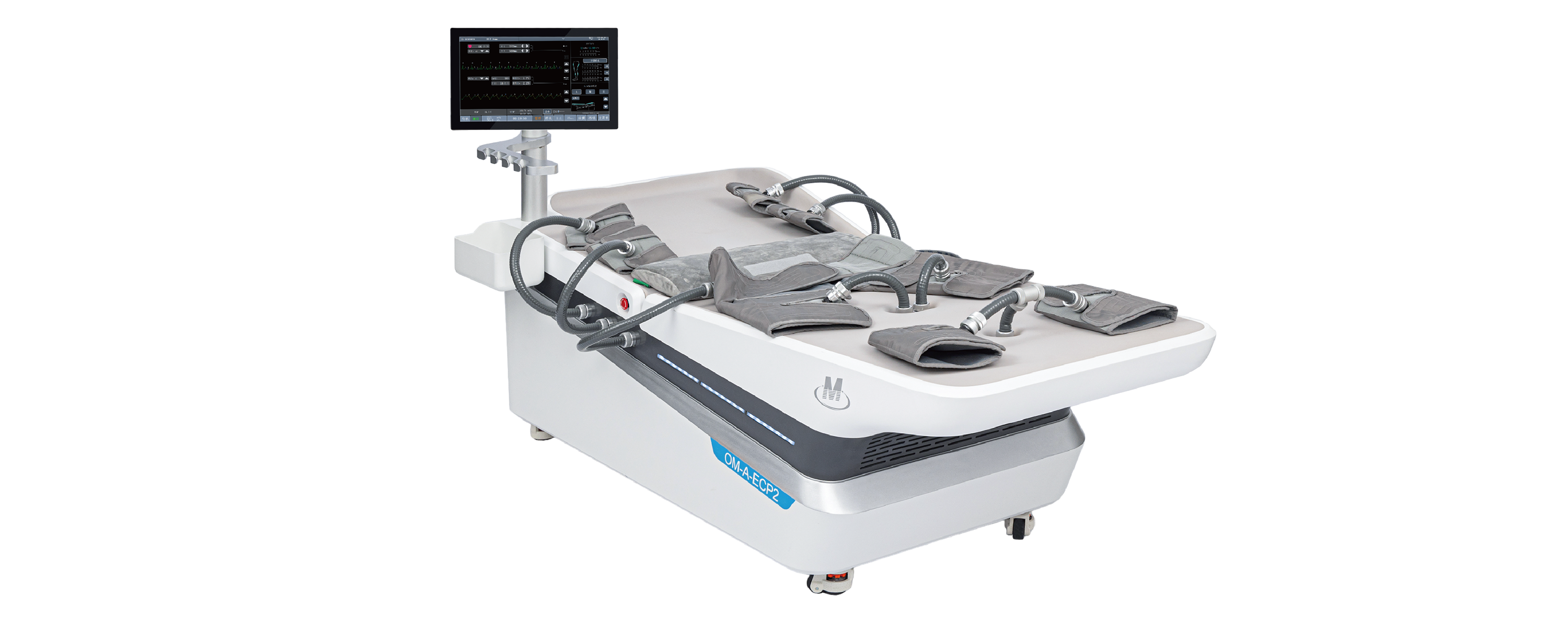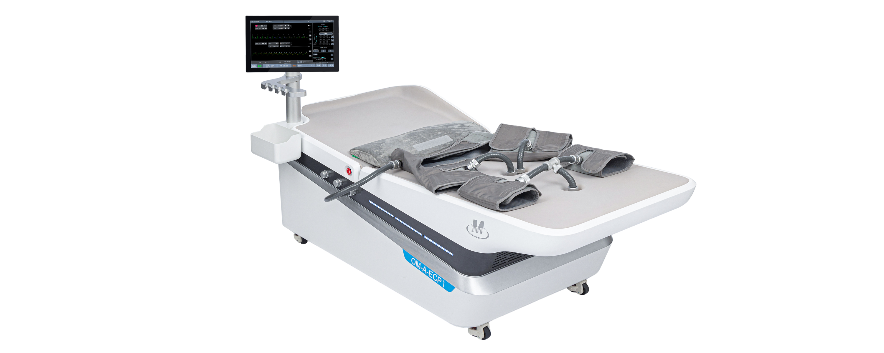 气囊式体外反搏系统是一种无创的治疗心脑血管缺血性疾病的系统。该系统通过心电信号同步控制气囊依次加压于小腿、大腿、臀部,使血液在心脏舒张期集中灌注于上半身,从而促进重要器官的血液灌注,改善人体冠状动脉供血不足的症状。